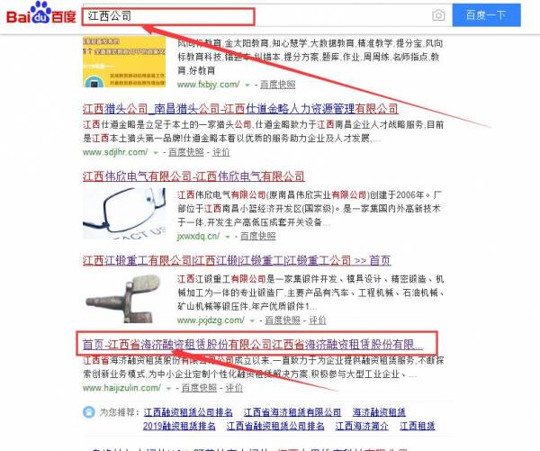 江西省海濟融資租賃股份有限公司同我公司簽署百度快照排名事宜
