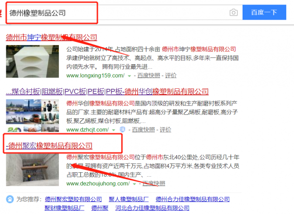 德州聚宏橡塑制品有限公司跟本公司簽訂快速排名合同