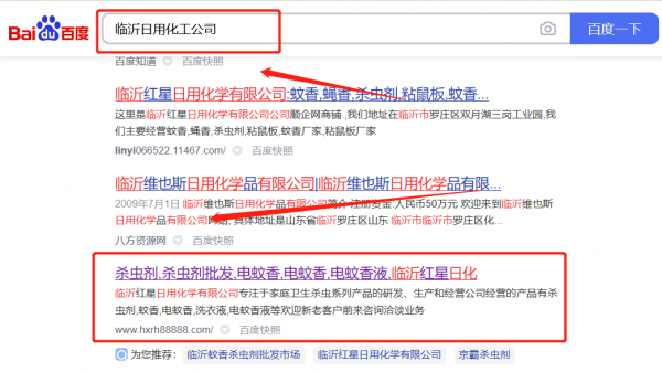 臨沂紅*日用化學有限公司百度關鍵詞排名案例欣賞