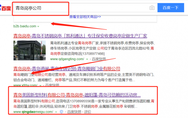 我們公司與青島*固新型材料有限公司合作中,對這個公司所經營的崗亭這個行業(yè)提供了關鍵詞搜索排名,與該公司的合作,更多的客戶讓我們公司為其提供關鍵詞搜索排名,通過每一次合作,我們公司不斷完善自己,同時希望合作伙伴在經營的路上越來越好。