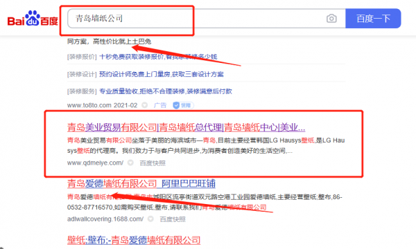 青島美*貿易有限公司百度排名案例欣賞