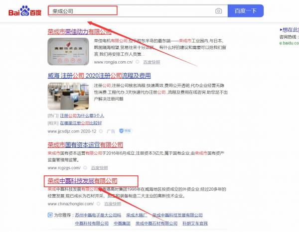 榮成中*科技發展有限公司網站優化排名效果展示