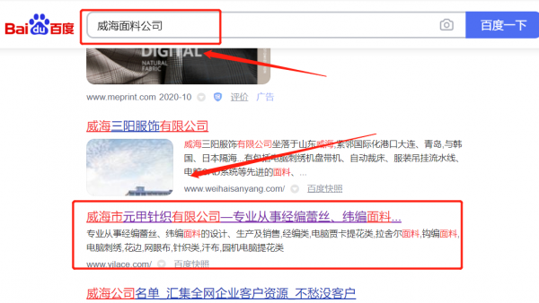 威海市*甲針織有限公司選用我司企業(yè)面料的網(wǎng)站優(yōu)化產(chǎn)品,其SEO關(guān)鍵詞有面料。通過(guò)技術(shù)手段優(yōu)化網(wǎng)站,可以實(shí)現(xiàn)網(wǎng)站在搜索引擎中關(guān)鍵詞排名提升,獲得更多品牌展示機(jī)會(huì),讓更多目標(biāo)客戶(hù)了解企業(yè)。威海市*甲針織有限公司成立于2012年,是經(jīng)威海市市場(chǎng)監(jiān)督管理局審核的有資質(zhì)的公司,其統(tǒng)一社會(huì)信用代碼:9137100**96583728L。公司地址:山東省威海市文化西路-197號(hào)-1216。