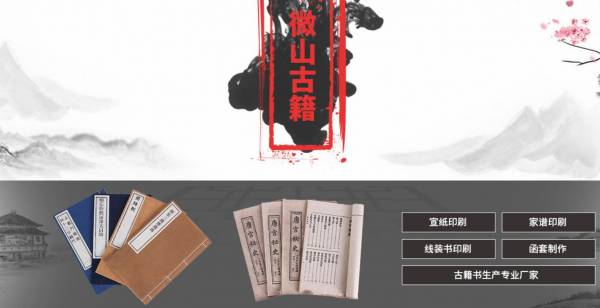 微山縣古*線裝文化發(fā)展有限公司選用我司企業(yè)印刷耗材行業(yè)的網站優(yōu)化產品,其SEO關鍵詞有 宣紙彩印,古籍線裝書,家譜制作,仿真字畫,地方志經書,微山縣古*線裝文化發(fā)展有限公司。其特點是用很合適的展示方式、展示效果、站點框架,把客戶及其用戶很關心的問題突出表現(xiàn);并以簡潔明朗的設計風格,清晰展現(xiàn)公司水平實力,確保一秒抓住目標用戶眼球,給用戶留下良好的第一印象。微山縣古*線裝文化發(fā)展有限公司成立于2013年,是經微山市市場監(jiān)督管理局審核的有資質的公司,其統(tǒng)一社會信用代碼:9137082608**84380U。公司地址:山東省微山縣經濟開發(fā)區(qū)。