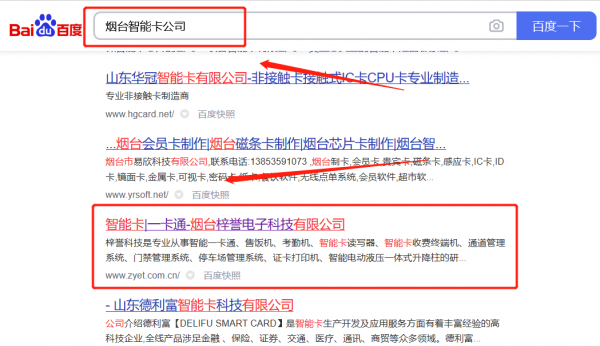 煙臺*譽電子科技有限公司選用我司企業智能卡的網站優化產品,其SEO關鍵詞有智能卡。按天計費,最快7天上詞,不到首頁不扣費。關鍵詞質量保證,白帽SEO符合百度算法,360、搜狗、移動端等排名效果免費贈送。煙臺*譽電子科技有限公司成立于1997年,是經煙臺市市場監督管理局審核的有資質的公司,其統一社會信用代碼:91370600**2870239C。公司地址:中國(山東)自由貿易試驗區煙臺片區煙臺開發區長江路202號8層808號。