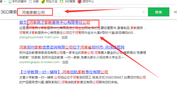 河南英才家教服務中心有限責任公司選用我司企業的百度快照排名協議