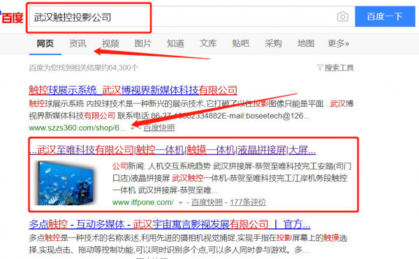 我們公司與武漢至唯科技有限公司合作中,對這個公司所經營的觸控投影這個行業提供了百度快照排名,與該公司的合作,更多的客戶讓我們公司為其提供搜索引擎優化推廣,通過每一次合作,我們公司不斷完善自己,同時希望合作伙伴在經營的路上越來越好。