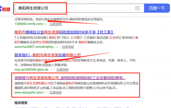 我們公司與湖南*興再生資源有限公司合作中,對這個公司所經營的再生資源這個行業提供了關鍵詞搜索排名,與該公司的合作,更多的客戶讓我們公司為其提供搜索引擎優化推廣,通過每一次合作,我們公司不斷完善自己,同時希望合作伙伴在經營的路上越來越好。